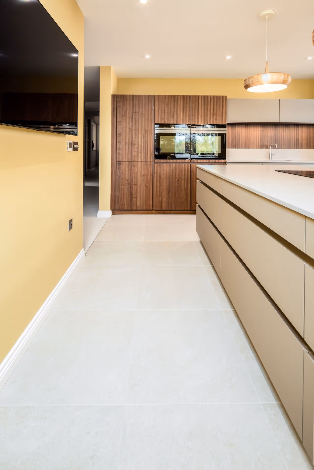 This North Yorkshire kitchen project demonstrates how thoughtful design can overcome the challenges of apartment living, resulting in a unique and visually striking space. The client sought a solution that would maximise functionality and style within the constraints of limited structural alterations. Andrew James Kitchens, Bedrooms & Bathrooms delivered a bespoke design that not only met these requirements but also introduced innovative features.