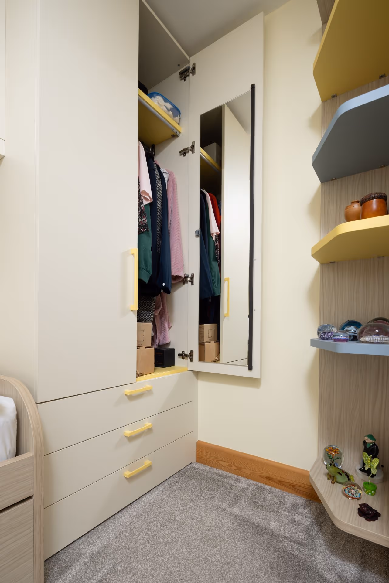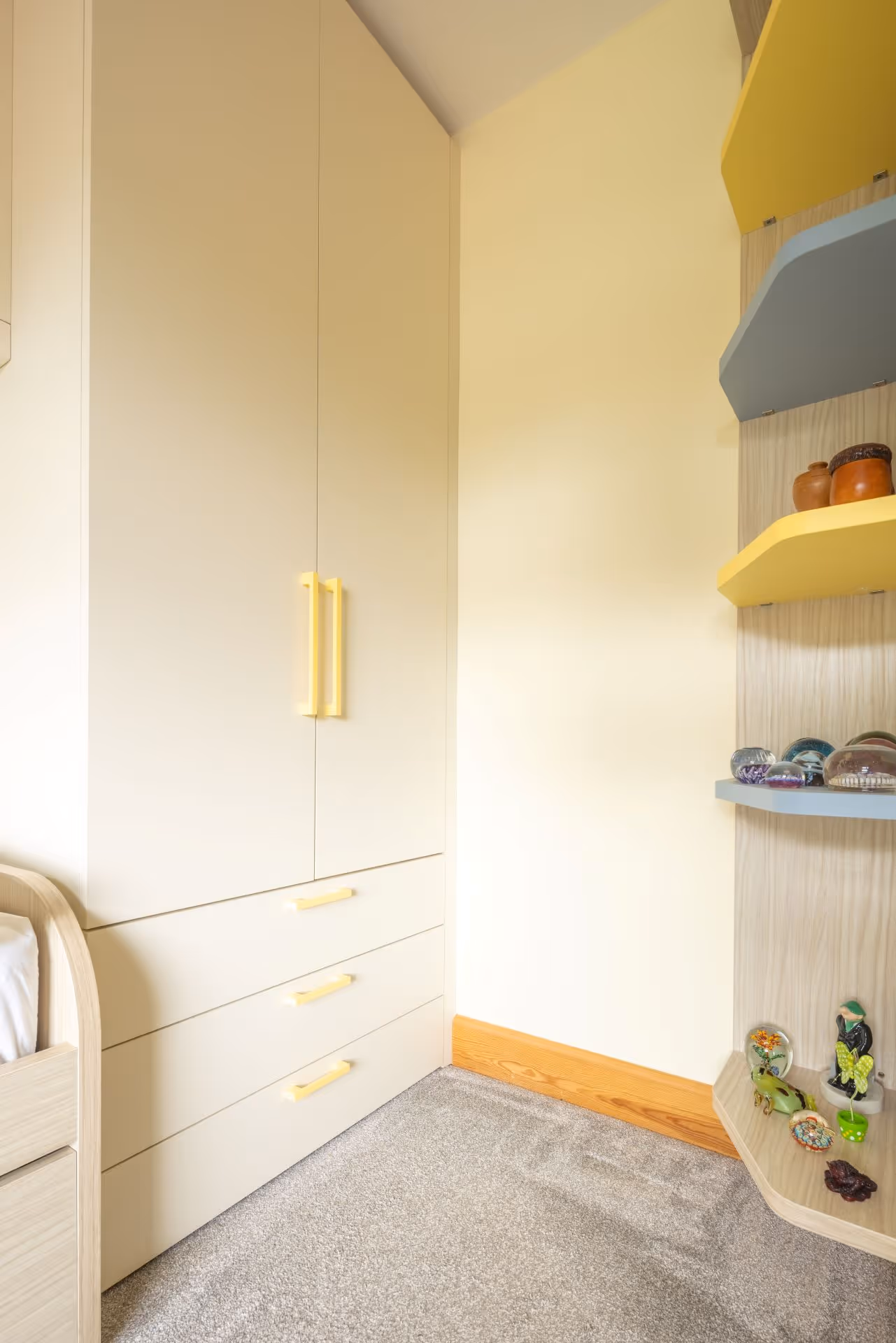 This West Yorkshire bedroom is a testament to thoughtful design that prioritises both practicality and enjoyment. It's a space that adapts to the needs of a host, providing a vibrant and welcoming environment for visiting family.